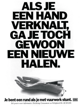 The advertisements that Sire makes can certainly be called shaking awake. Everyone in the Netherlands knows the anti-smoking advertisements and those for (or against) fireworks. On their site they have a timeline with 50 years of campains. https://sire.nl/campagne-overzicht/jaren